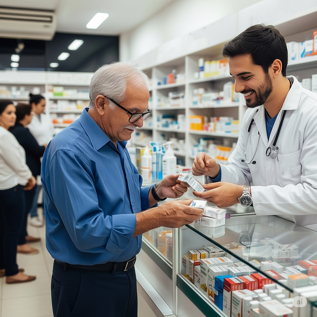 Remédios com e sem prescrição, genéricos e de marca, para diversas condições de saúde.